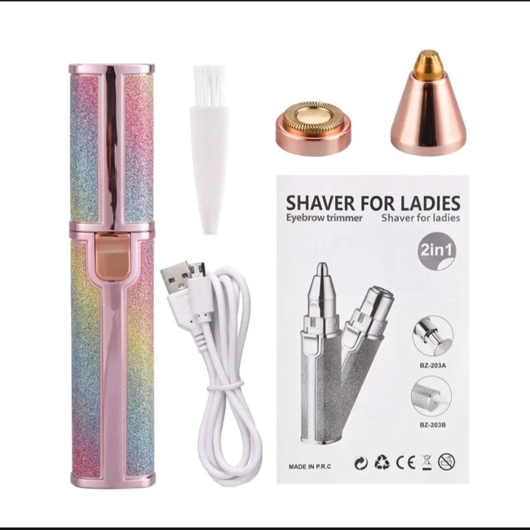 Product details of 2 in 1 Rechargeable Hair Remover Trimmer for Women | Electric Flawless Hair Remover Machine | Painless Eyebrow Shaver, Lip, Chin, Mustache | Smooth and Gentle Hair Remover Trimmer | Precision Trimmer for Face, Nose, Arms | Rechargeable and Portable Razor